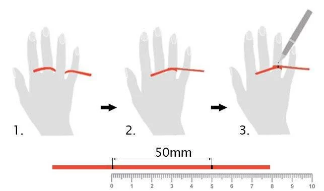 • Messen Sie die Länge bis zur Markierung (Ringumfang in mm)