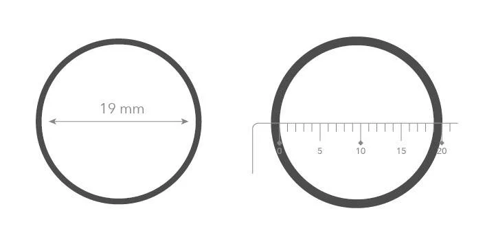 • Vergleichen Sie den Wert mit unserer Größentabelle, um Ihre Ringgröße zu ermitteln.